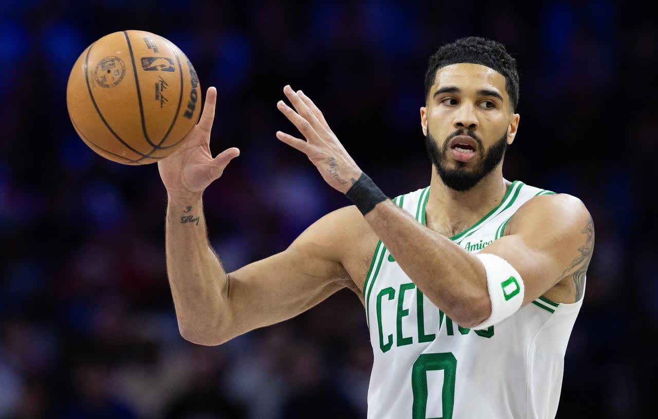 塔图姆全场出战41分51秒,20投11中三分8中4罚球7中6,空砍32分15篮板4助攻1抢断1盖帽,正负值+5。